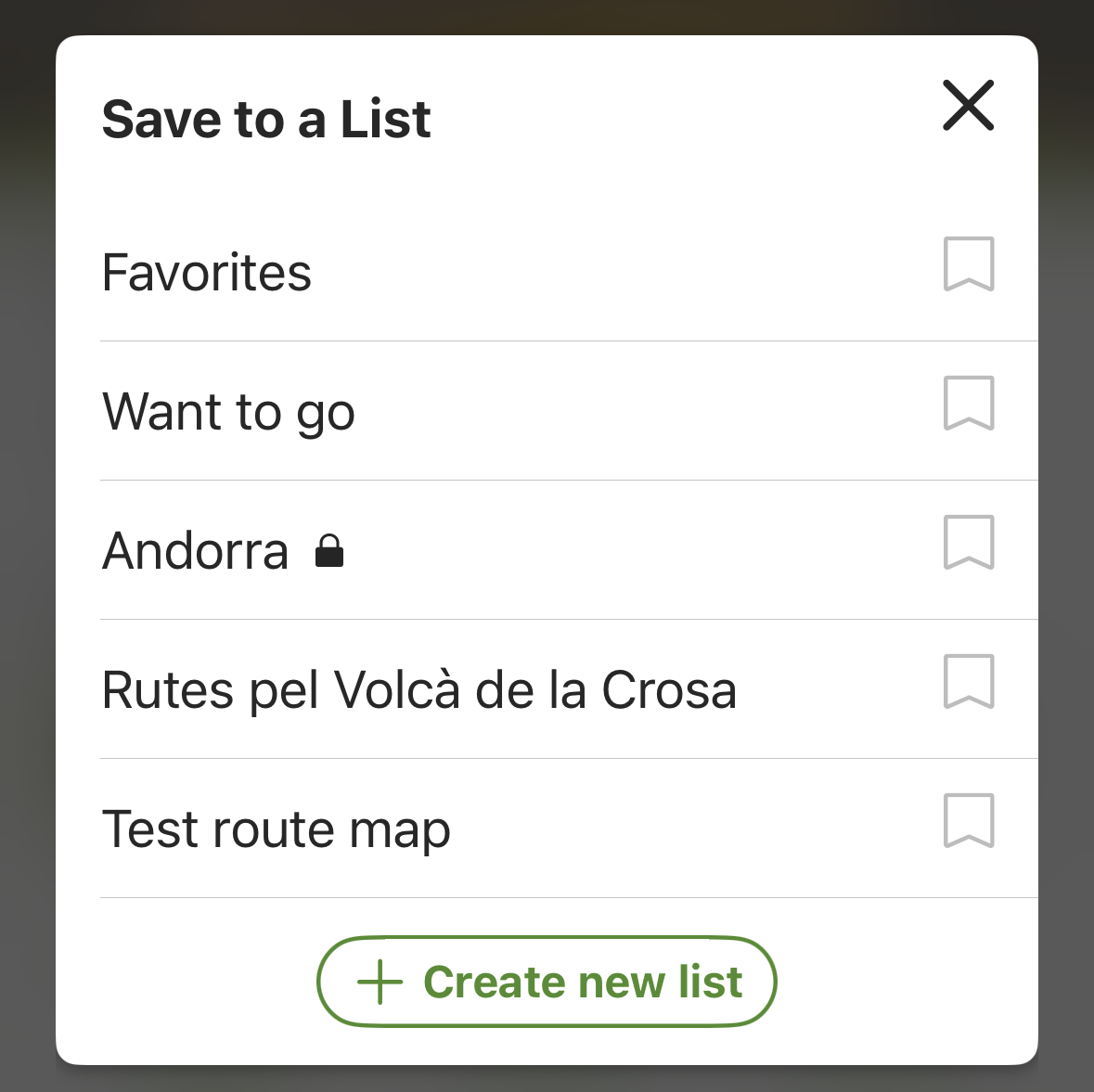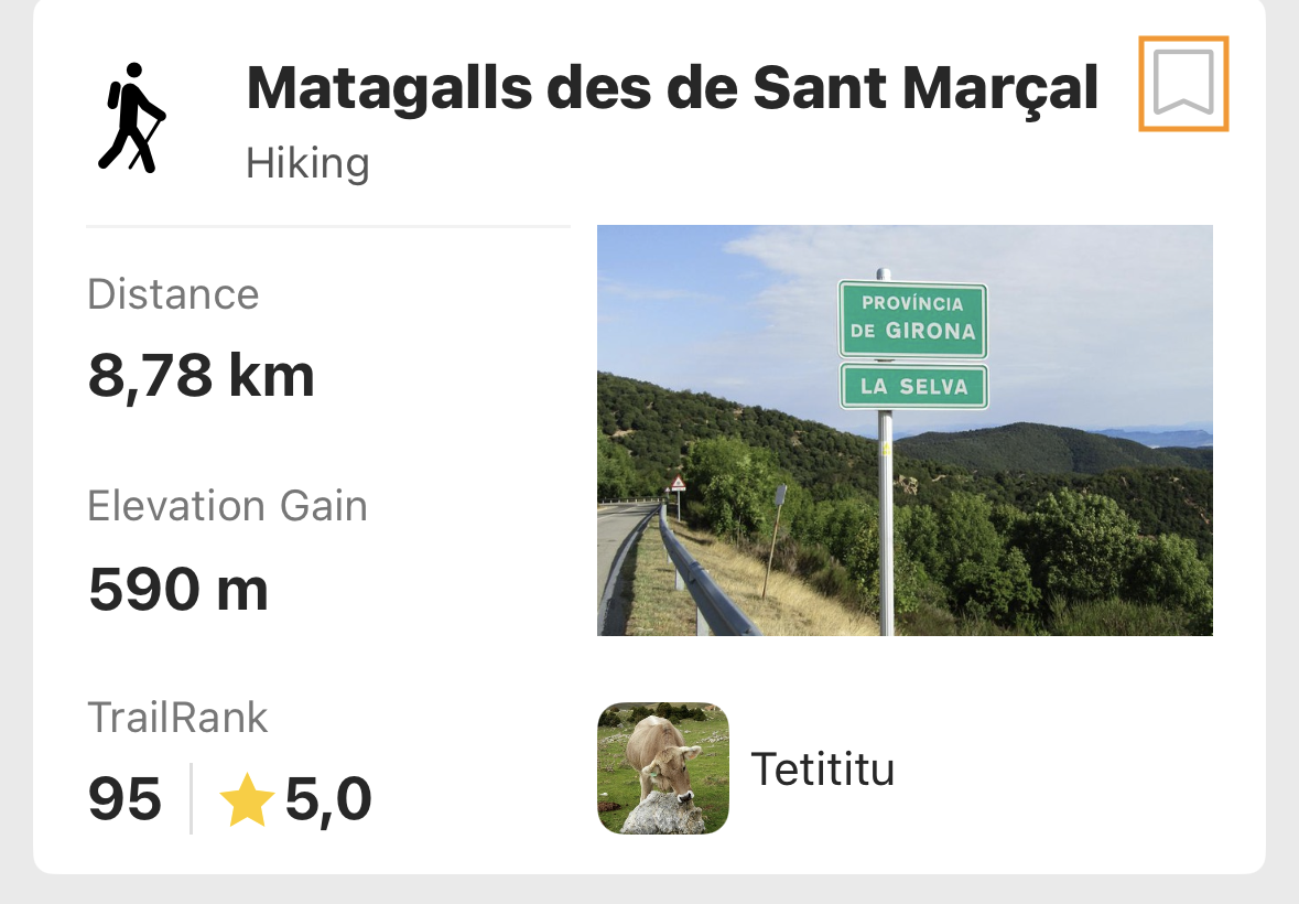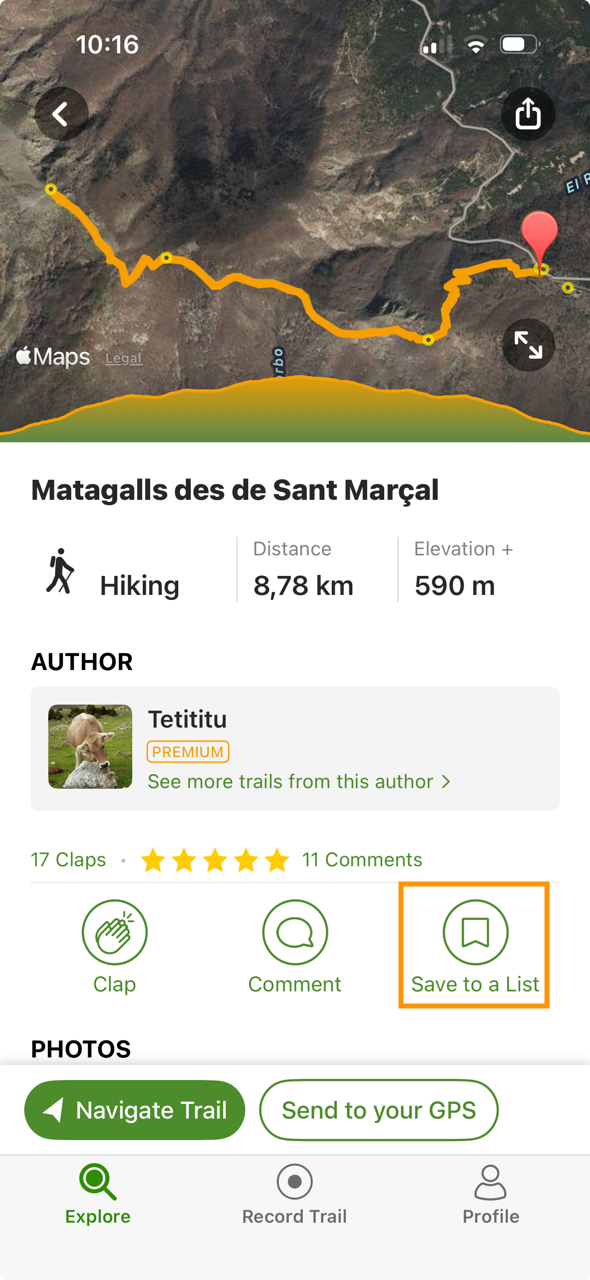 To save a trail to a list, click the bookmark icon in the top right corner of the trail preview card.