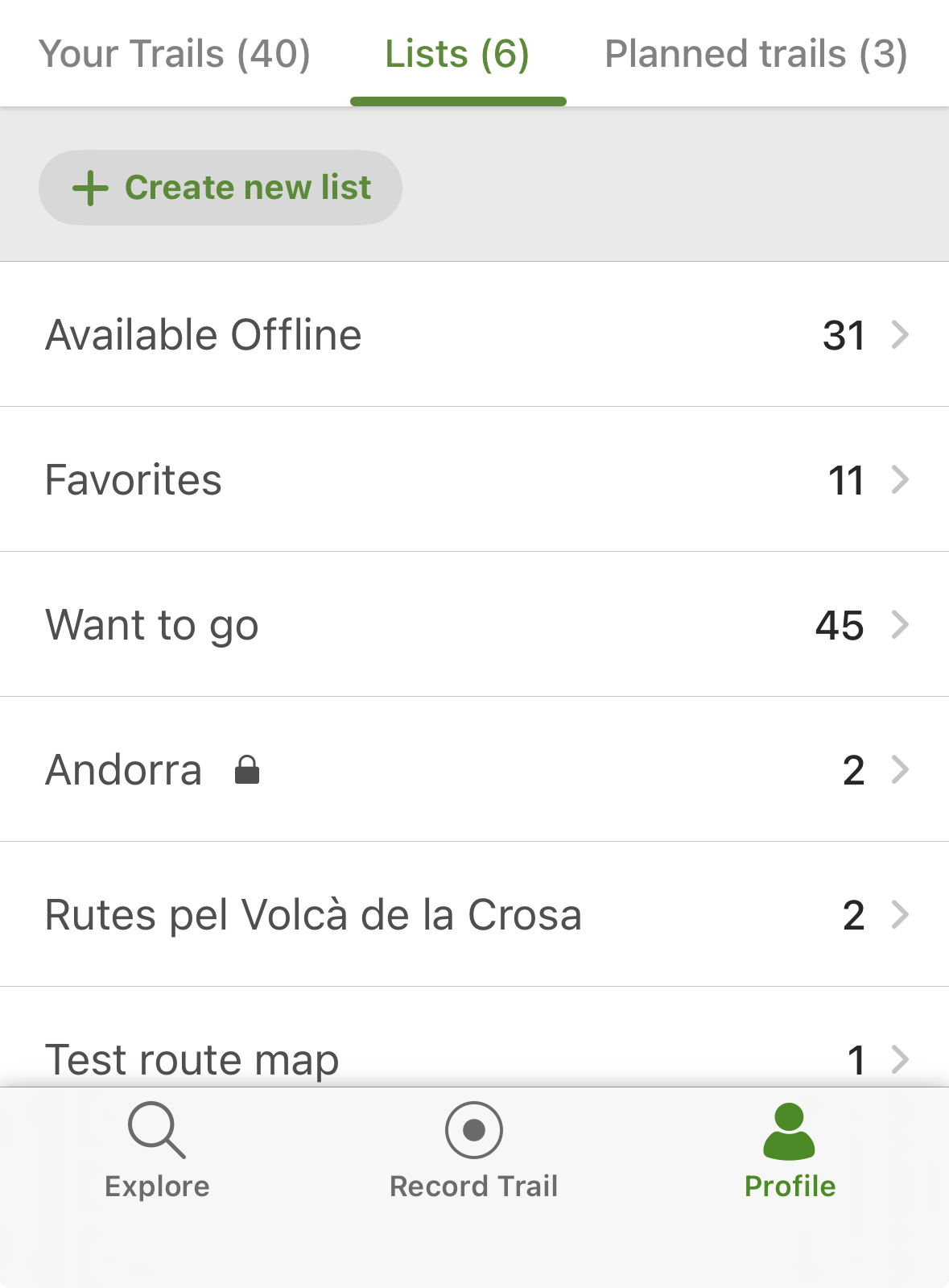 Note that even if you mark a list as private, the trails within it remain visible; only the list name stays private. Trails marked as private cannot be added to other lists — they only appear in your general Your trails list and are not visible to other users.