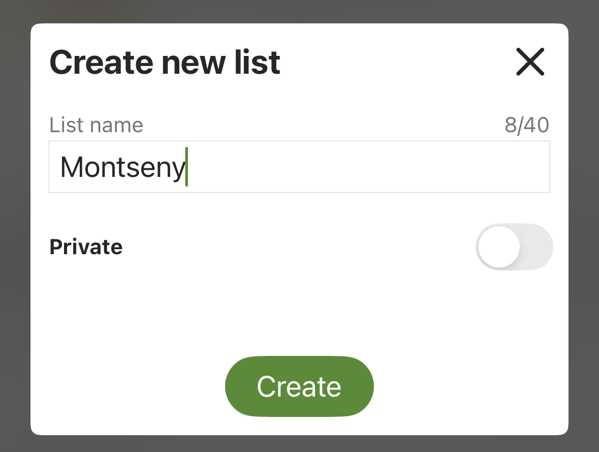 - If you want it to be private, check the Private box (private lists are only visible to you and cannot be shared).