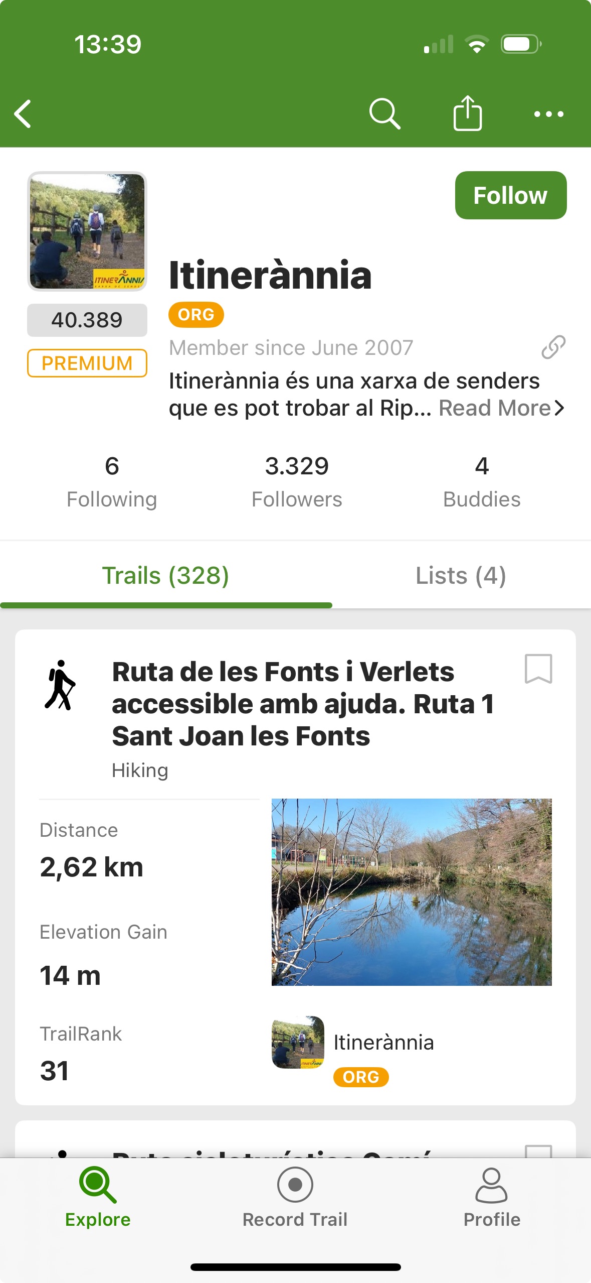 In the app, you can see Wikiloc ORG accounts in the following places: